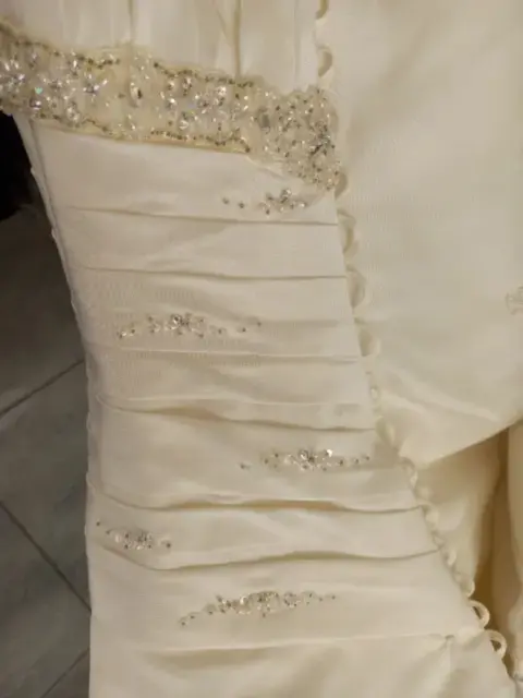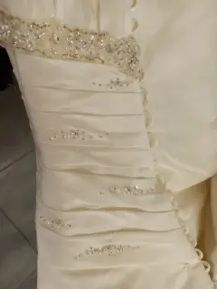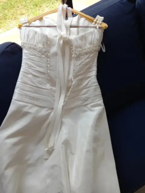 Vestido de Novia strapless color Ivory , detalle de pedrederia al frente y en cauda (integrada ) , Marca Angela Betasi .Talla M (32 )100 % poliester 100% Satin