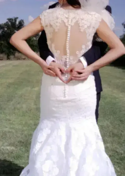 Vestido de novia, excelente estaso, estilo sirena, con detalles en encaje y transparencias en la espalda, marca Allure Bridals