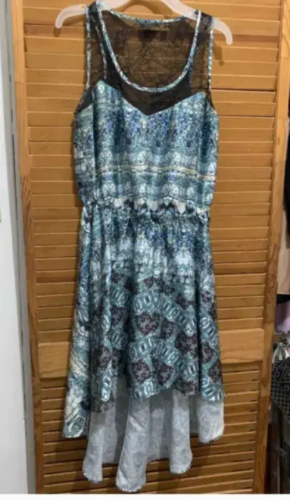 Vestido-guess-seda-renda-feminino-adultoTalla XSPuede quedar a talla chica.De adelante, llega arriba de la rodilla y de atrás es largo.