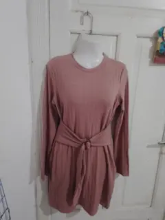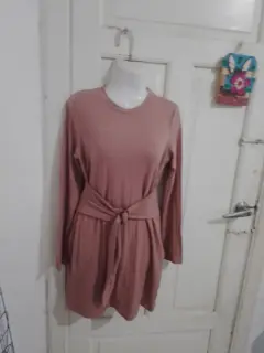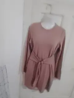 Vestido de tela de suerte ideal para el frío ,palo de rosa talla grande, abarca 34/36,trae cinturón
