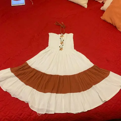 Hermoso vestido de verano. Hermoso vestido de verano bordado a mano talla Mediana de dama. El resorte de arriba ajusta Perfecto al cuerpo