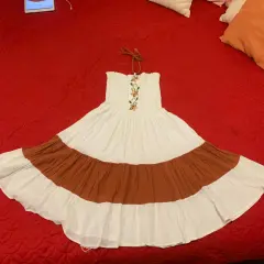 Hermoso vestido de verano bordado a mano talla Mediana de dama. El resorte de arriba ajusta Perfecto al cuerpo