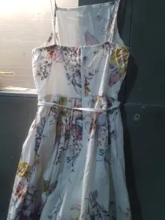 Hermoso vestido floreado, ligero de la parte de arriba, en la parte de abajo con un poco de vuelo y una ligera crinolina.