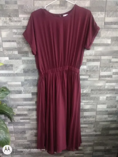 Hermoso vestido color guinda Talla S=4 con resorte en la cintura y amplio de la parte de abjo