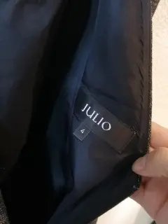 Hermoso vestido JULIO estilo Audrey Hepburn. Hermoso vestido estilo Audrey Hepburn. Marca JULIO. ¡Tiene bolsillos! Tela negra con hilo plateado. (Brilla ligeramente con luz, no se aprecia en foto) Cierre oculto. Cinturón delgado. Talla 4. 45cm de axila a axila y 35cm de cintura (frente) Se usó unas 3 ocasiones pero le pongo usado por mini detalle en cinturón por estar guardado (foto)Usa el cupón VEST10 para un 10% de descuento