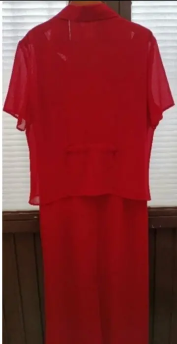 Hermoso vestido largo con blusa nuevo. Hermoso vestido largo nuevoREBAJADO!Puede servir para fiesta o casual.Vestido de tirantes gruesos y blusa encima con elegantes adornos.Hermoso color rojo que favorece a todo color de piel.Talla 16Mide 59 cm. de axila a axila y 1.37 de largo.La blusa mide 59 cm. de largo.Está muy lindo éste vestido 👌🏻