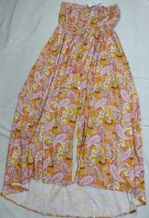 Hermoso vestido ligero straple. Hermoso maxivestido straple gde queda bien a una talla 36-38, tela muy fresca. Exelente para personas altas. Abertura en la parte de enfrente. Ideal para personas altas.