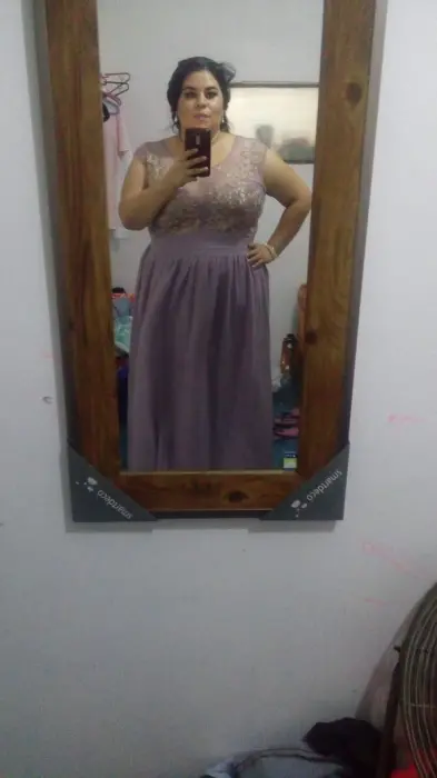 Vestido de Noche, talla 2xl,lila grisáceo, del lado del busto tela transparente, llega abajo del tobillo, ideal para zapatillas