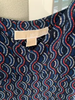 Hermoso vestido Michael Kors. Vestido Michael Kors talla L (Grande) se usó un par de veces. Es vestido es largo en color azul Marino y con detalles en blanco y rojo. En verdad te hace lucir una buena forma de cuerpo.