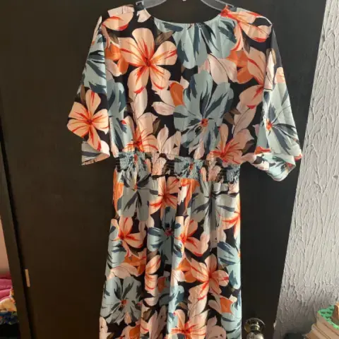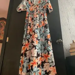 Hermoso vestido de flores con colores vibrantes y aberturas en ambas piernas, apto para primavera , luce súper lindo Talla L Costo$260Nuevo sin etiqueta