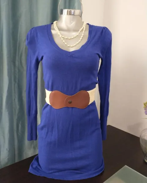 Vestido azul/morado de punto, manga larga..elegante hermoso ..para invierno ideal, impecable, listo para las fiestas !