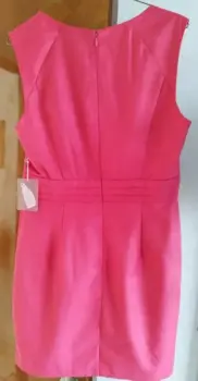 Hermoso vestido nuevo color precioso rosa intenso.Corte recto con dos pastelones al frente.Talla M.Corto, sin mangas.Mide 43 cm. de axila a axila, 38 cm. de cintura y 85 cm. de largo.La tela no estira.Simplemente bellísimo!Rebajado!