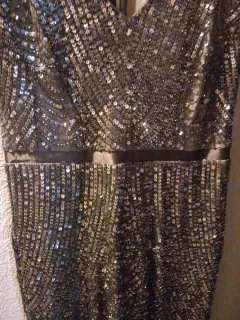 Hermoso Vestido para fiesta. Vestido de coctel largo , cafe en lentejuela.Excelente estado , forro cubierta transparente elegante