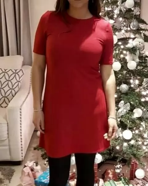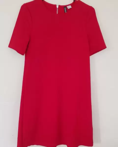Vestido corto color rojo intenso hace bonita figura, si estira en excelente estado solo se usó 1 vez