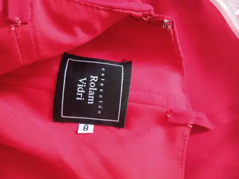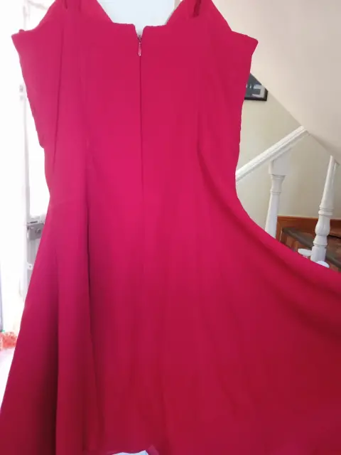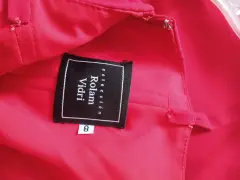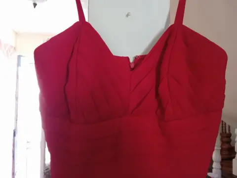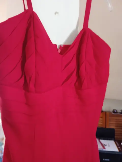 Hermoso vestido corto en color rojo, con vuelo en la falda, talla 8 dama.