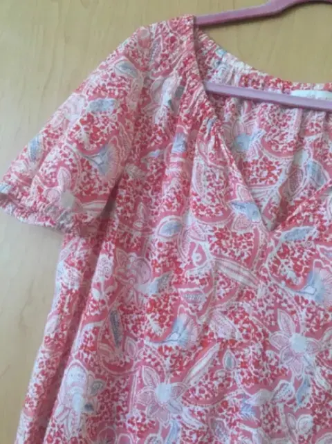 Hermoso vestido, muy fresco, cómodo. Llega a la rodilla.Viene amplio. Puede ser talla mediana.