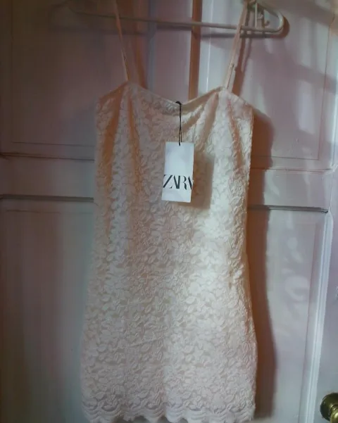 Vestido Zara de encaje talla S, busto 70, con forro, Largo 67 cm, ideal para cualquier reunión.