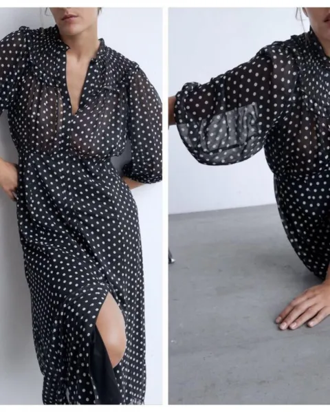 Hermoso vestido ZARA polka, nuevo con etiquetas, sin detalles. Queda hermoso, transparencias en la parte de arriba se ve increíble
