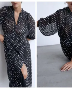 Hermoso vestido ZARA polka Xs. Hermoso vestido ZARA polka, nuevo con etiquetas, sin detalles. Queda hermoso, transparencias en la parte de arriba se ve increíble