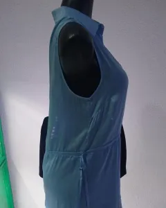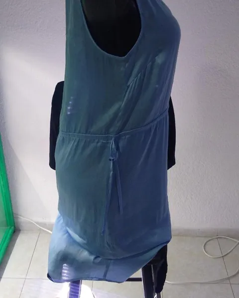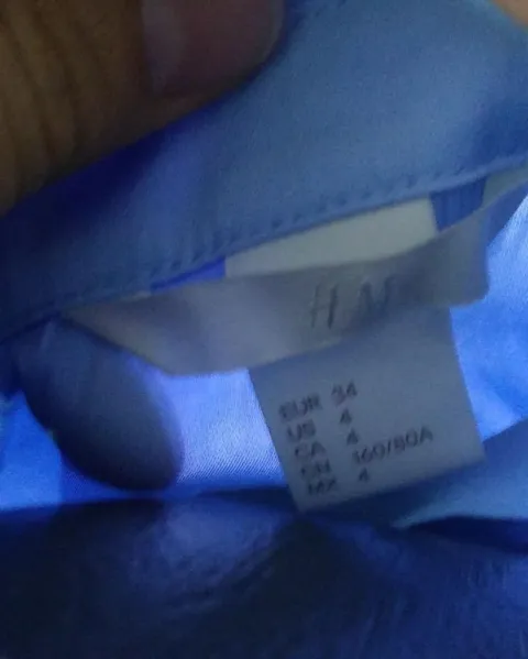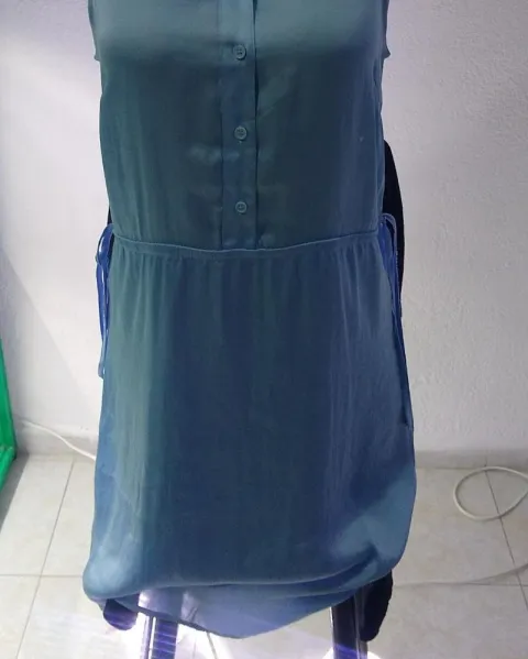 H&M vestido azul cielo sin mangas, cuello en V, talla 4 chico, tiene unas manchas de polvo en el cuello.