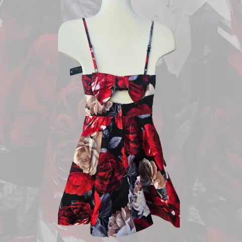 Ideal para fiesta. Vestido estampado con colores rojos, blancos y negros, textura súper suave e increíble calidad🥰