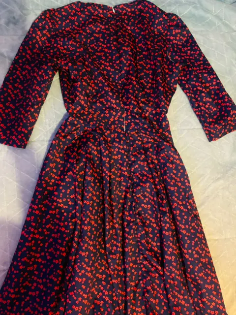 Increíble vestido azul con flores rojas