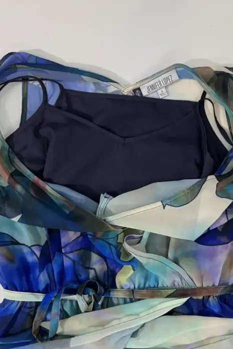 Jennifer López acuarela dress. Vestido súper ligero y fresco súper combinable ideal para cualquier ocasión el único detalle es que le falta la cinta que lleva en la cintura En perfecto estadoNuevo sin etiquetas