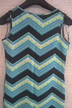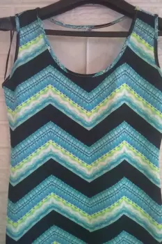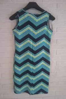 Vestido para fiesta de la marca Understar, talla mediana aunque en la etiqueta dice grande, equivalente en talla 32, 95% poliéster, 5% elasteno, ajustable, a la rodilla, en colores negro con combinación en azul agua, verde agua y blanco, ideal para un evento de medio día! Lavado en casa. Solo una puesta, seminuevo, sin detalles, excelentes condiciones. El precio regular en tienda es de $ 650.00, lléveselo al increíble precio de solo $ 300.00