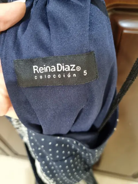 Lindo vestido Azul Marino talla chica. Vestido tipo halter ajustable, color azul Marino con beige estampado midi, talla chica con forro