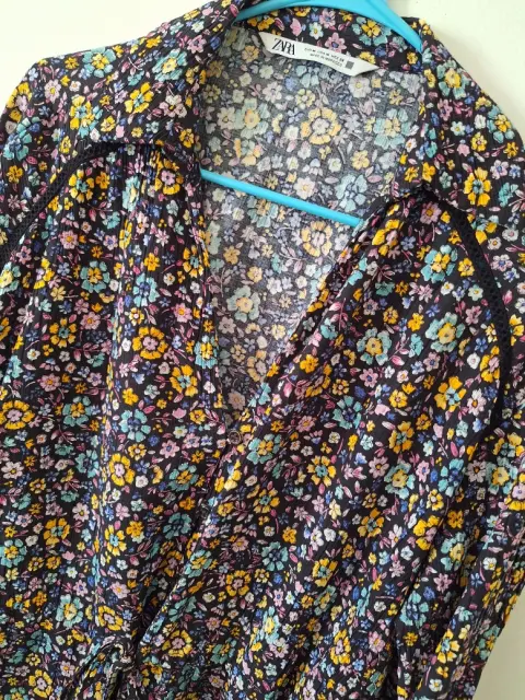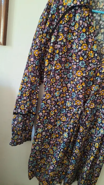 Lindo vestido ideal jovenes, algo formal tipo camisero. Con discretos detalles en cinta negra coryo y con delicadas y pequeñas flores en tela, ideal para algo formal