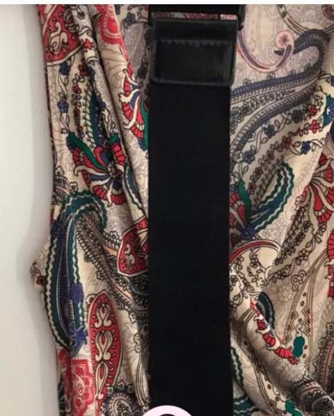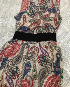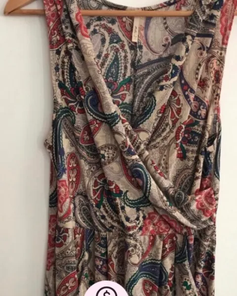 Vestido casual, talla S, escote cruzado ajustable, bolsas laterales, cinturón negro elástico. Mide de axila a axila 42cms y de largo 89cms. Arma super bonitobonito!