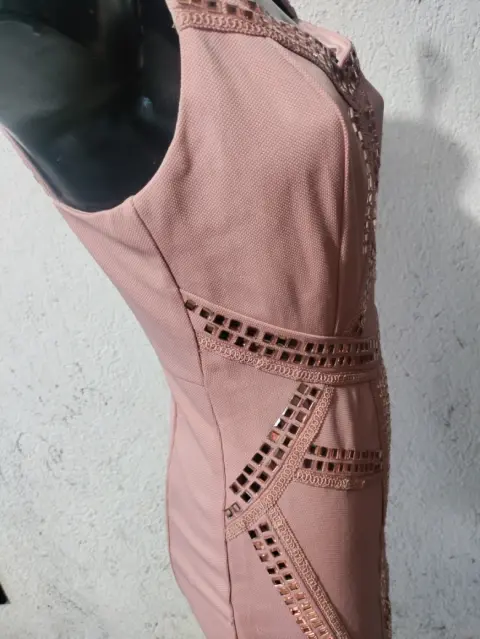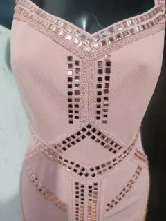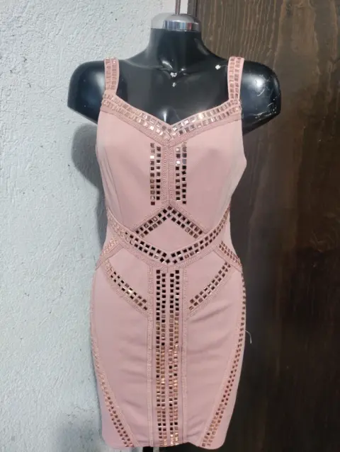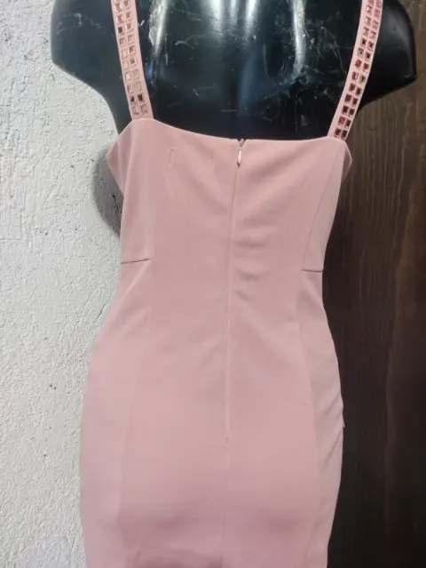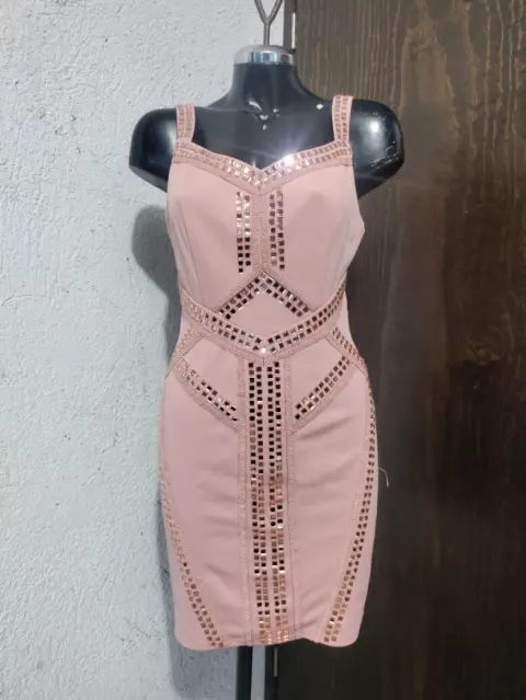 Vestido de fiesta en talla mediano óptimas condiciones color rosa con aplicaciones espeji