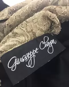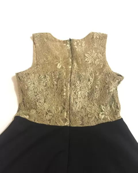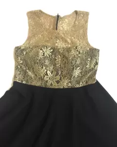 Lindo vestido de noche de encaje dorado y negro