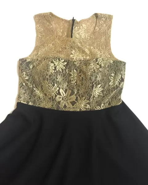 Lindo vestido de noche de encaje dorado y negro. Hola.chicas por limpieza de closet tengo a la venta este lindo vestido de noche súper lindo con detalles únicos de diseño.Es talla S Está súper lindo y listo para lucirse, leo ofertas razonables y también podemos hacer un paquete y mejoro precios 🍀🙏😊🌻❤️