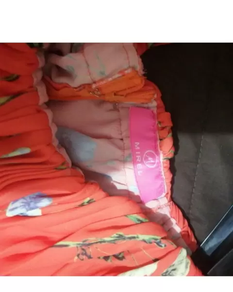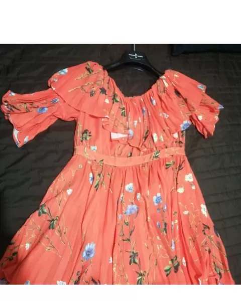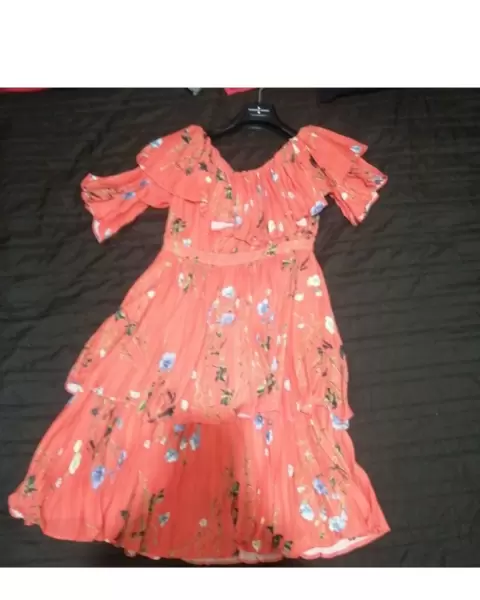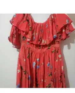 Lindo vestido con olan en la parte de los hombros, queda debajo de la rodilla, y tiene linda caída.