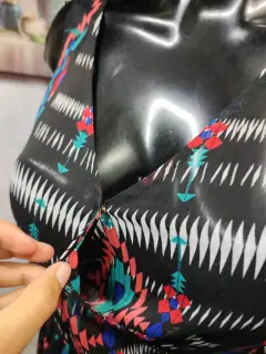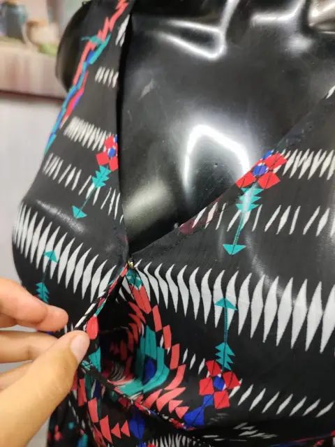 Marca talla S pero mi maniquí es talla 9 ,tiene un broche pequeño en la parte del escote para que no se habra