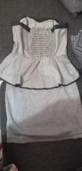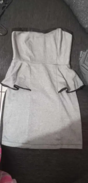 Lindo vestido en negro jaspeado con gris. Vestido en algodón, strapless, súper sexy, se amolda muy bien ya que la tela es ajustable