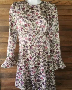 Lindo vestido floreado. Lindo vestido floreado tela tipo seda, ajusta al cuerpo tiene botones en la parte de la falda.Le falta el boton de la parte de atrás del cuello.
