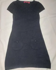 Hermoso vestido tejido negro, con maga corta, dibujo en el pecho y liso de abajo, con dos bolsas de frente, no ayudan las fotos, no está nada opaco, ni decolorado, está en perfectas condiciones, puesto como 1 o 2 veces, llega arriba de la rodilla. Dice talla M queda a S.