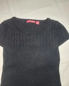 Lindo vestido negro tejido. Hermoso vestido tejido negro, con maga corta, dibujo en el pecho y liso de abajo, con dos bolsas de frente, no ayudan las fotos, no está nada opaco, ni decolorado, está en perfectas condiciones, puesto como 1 o 2 veces, llega arriba de la rodilla. Dice talla M queda a S.