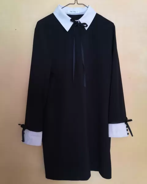 Precioso vestido tipo Merlina, es un vestido corto pero bastante elegante, la talla es L pero también le queda bien a una talla M si te gusta la ropa no tan pegada.
