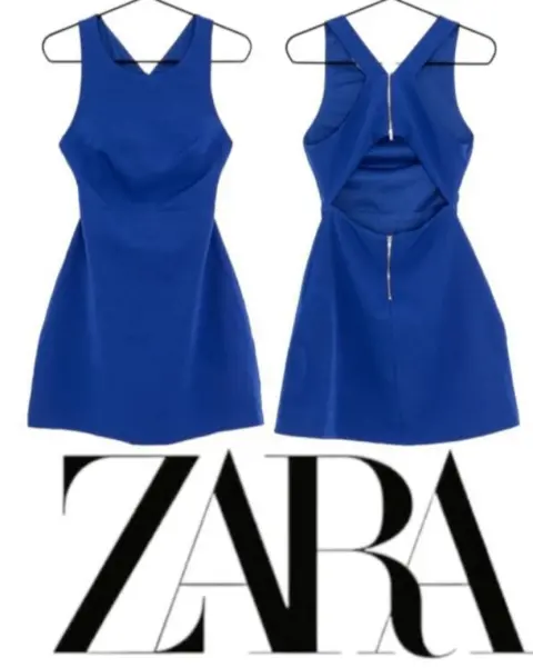 Lindo vestido Zara. Lindo vestido corto, con escote en la espalda, color azul,en perfectas codiciones , talla S