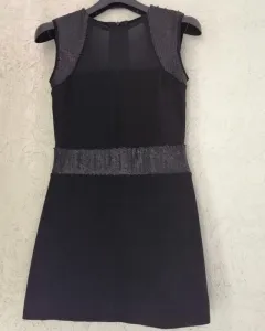 LOB | Vestido Negro con Transparencias. Vestido de fiesta color negro, tela stretch, corto, con lentejuelas, sin mangas, con transparencias en el escote y la espalda. Con un detalle en foto 5. Talla 1. Perfecto para salir de fiesta o a cenar.