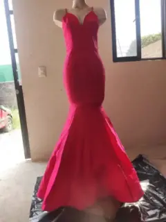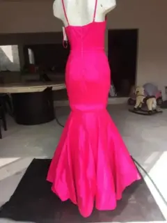 Vestido en talla en torzo y cadera, tipo sirena, color fuchsia, tipo V frente.Nota, cuento con talla M y L