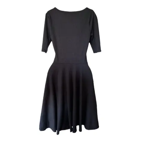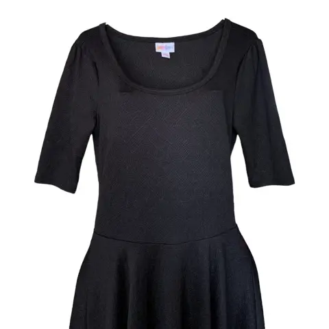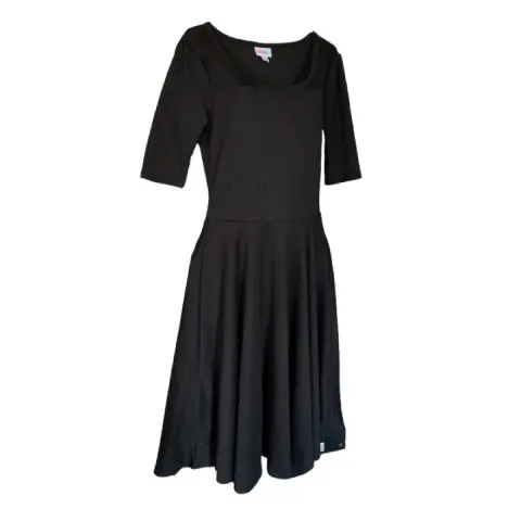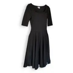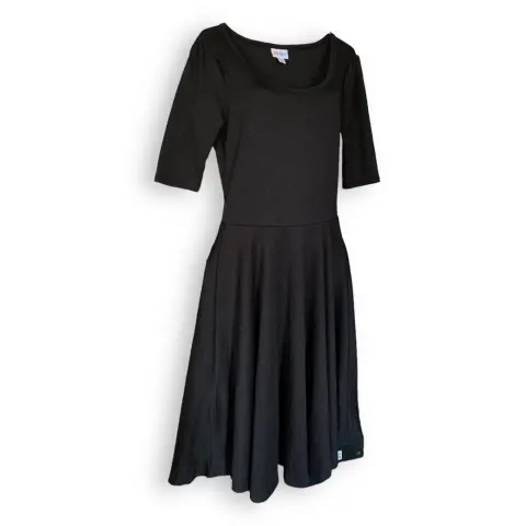 Lularoe Vestidos Vestido negro de vuelo. Este vestido midi chic con cuello redondo y manga con volantes, resalta la zona del pecho, hecho de material suave, cómodo de llevar. El vestido de manga corta con escote redondo frontal cuenta con mangas con 3/4, sin cierre, cintura alta, dobladillo acampanado, color sólido, longitud por debajo de la rodilla, estilo elegante