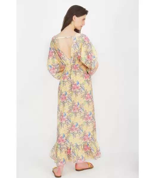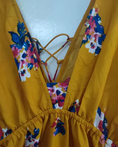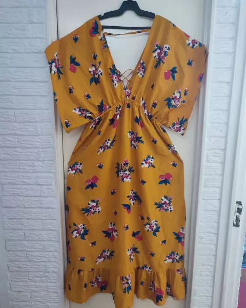 Maxi vestido amarillo mostaza con flores. Las primeras fotos son de referencia, es el mismo modelo, diferente color.