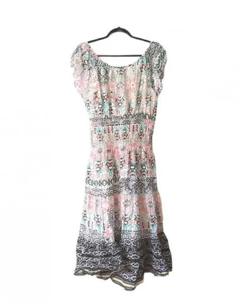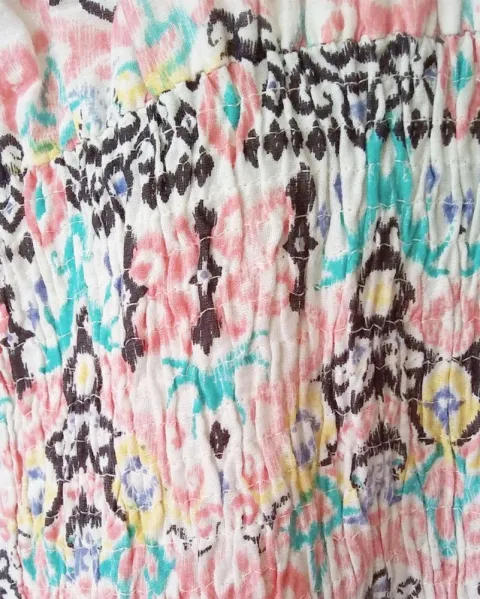 Vestido boho maxi manga corta xon elástico ennla cintura con forro de la marca Mlle Gabrielle talla Xl. El producto es usado en excelentes condiciones sin detalles. Proviene de un hogar libre de humo de tabaco y mascotas.100% algodón.