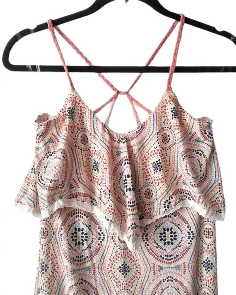 Maxi vestido boho Xhilaration. Maxi vestido estilo boho de la marca Xhilaration talla S, con tirantes cruzados. El producto es nuevo sin etiqueta en excelentes condiciones sin detalles. Proviene de un hogar libre de humo de tabaco y mascotas.MedidasSisa: 42 cms y estira a 47 cmsCintura: 41 cms, estiraCadera: 58 cms, estiraLargo: 149 cms95% poliéster, 5% spandex