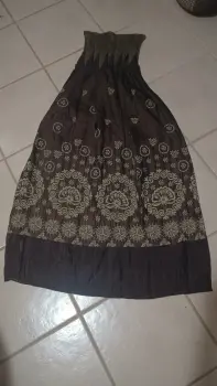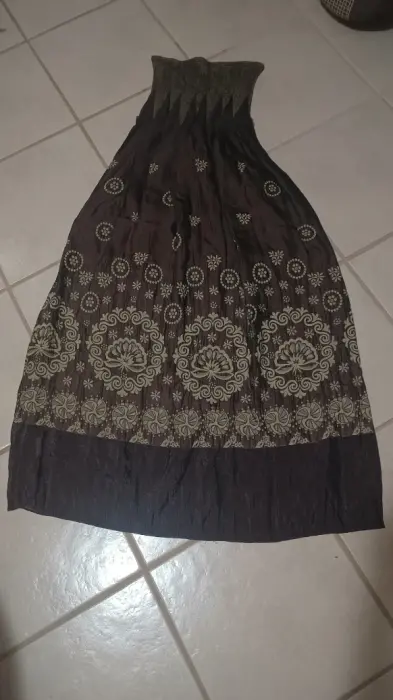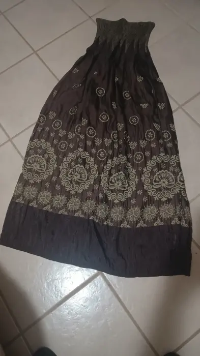 Maxi vestido café. Lindo vestido en café con diseños en beige. Elegante o casual, para esta temporada es excelente. Llega a los tobillos. Unitalla s/m