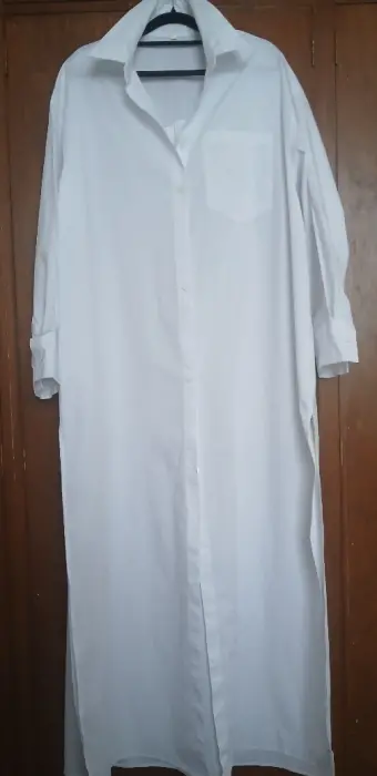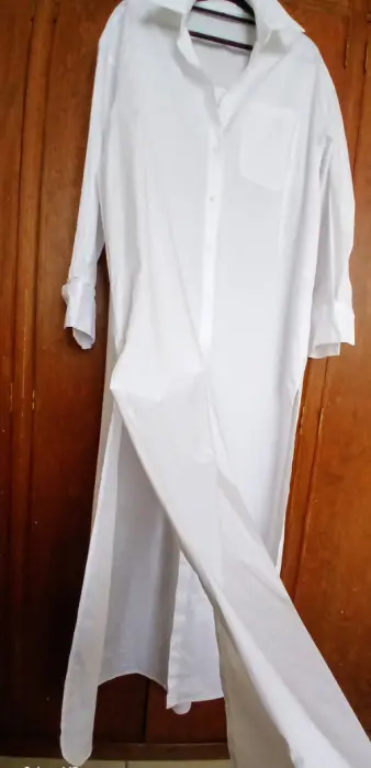 Maxi vestido camisero blanco, elegante y fresco, botones de concha nacar, a estrenar sin detalles es talla M pero también queda en talla L, la avertura de la pierna llega hasta la rodilla, lo puedes usar como ensamble o con un lindo cinto, se ve muy sexy.Medidas:Axila a axila 61 cmHombro a hombro 55 cmCintura 70 cmLargo 142 cm